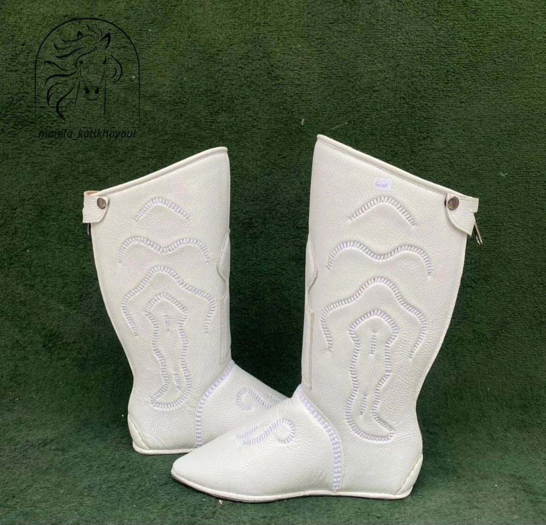 ✔️ مريح فالرجل وثابت أثناء الركوب – بلا قلق بلا إزعاج✔️ تصميم أبيض أنيق كيعطيك حضور قوي فالتبوريدة والمناسبات